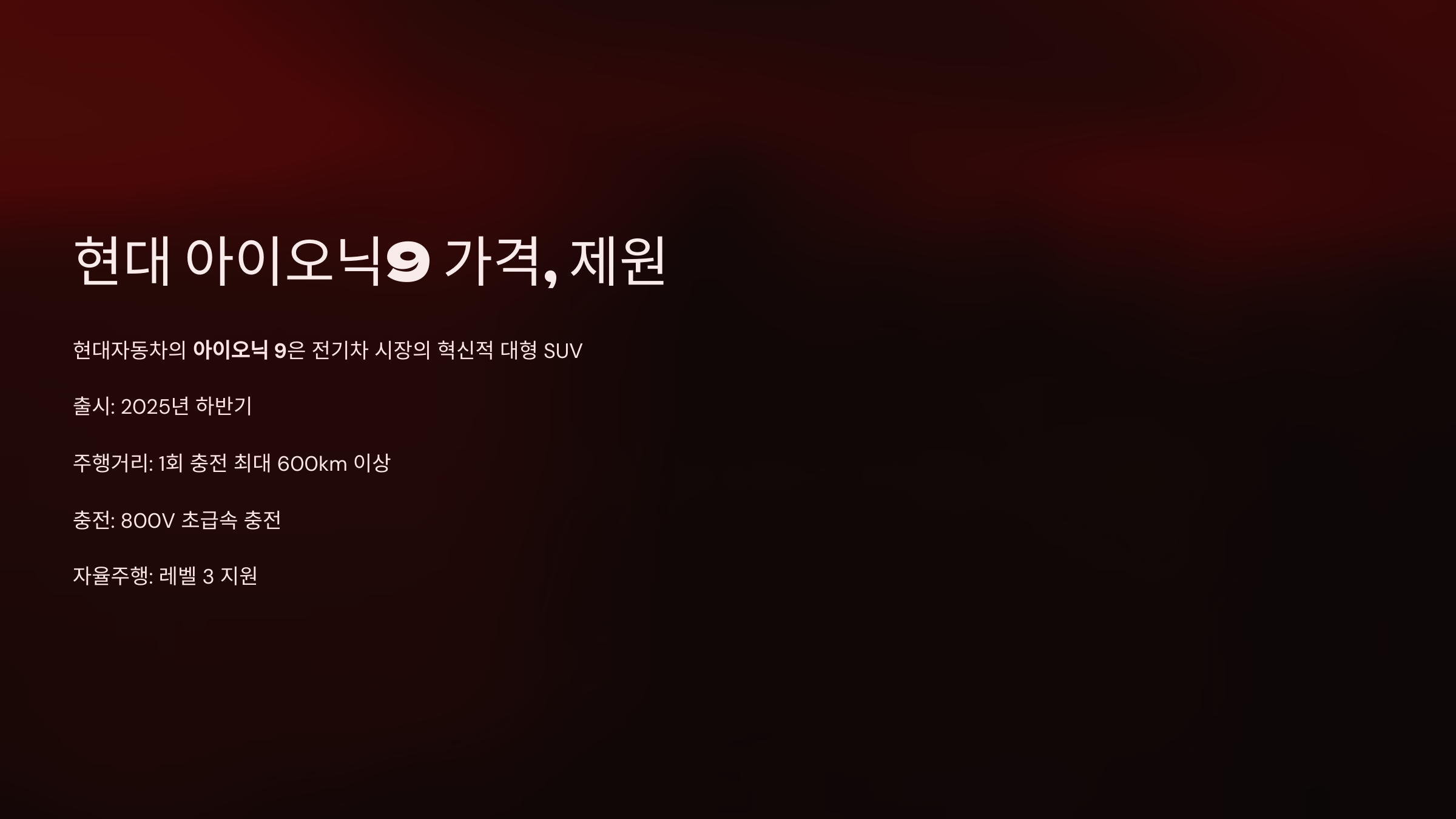 📌 아이오닉 9은 기존 아이오닉 7보다 더욱 고급화된 모델로, 테슬라 모델 X 등과 경쟁할 것으로 예상됩니다.