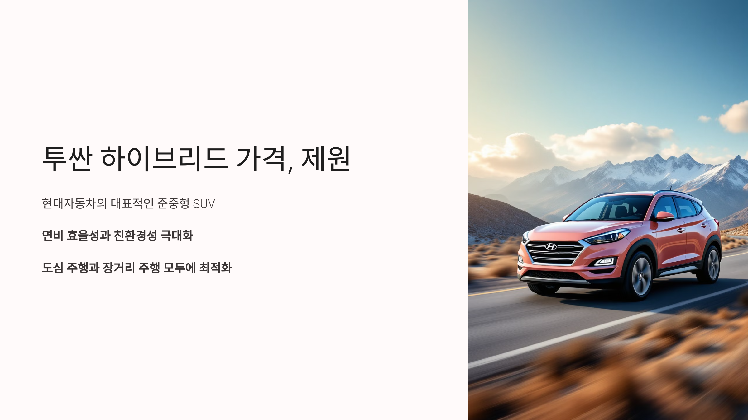 🚗 투싼 하이브리드로 경제적이고 친환경적인 드라이빙을 경험하세요!