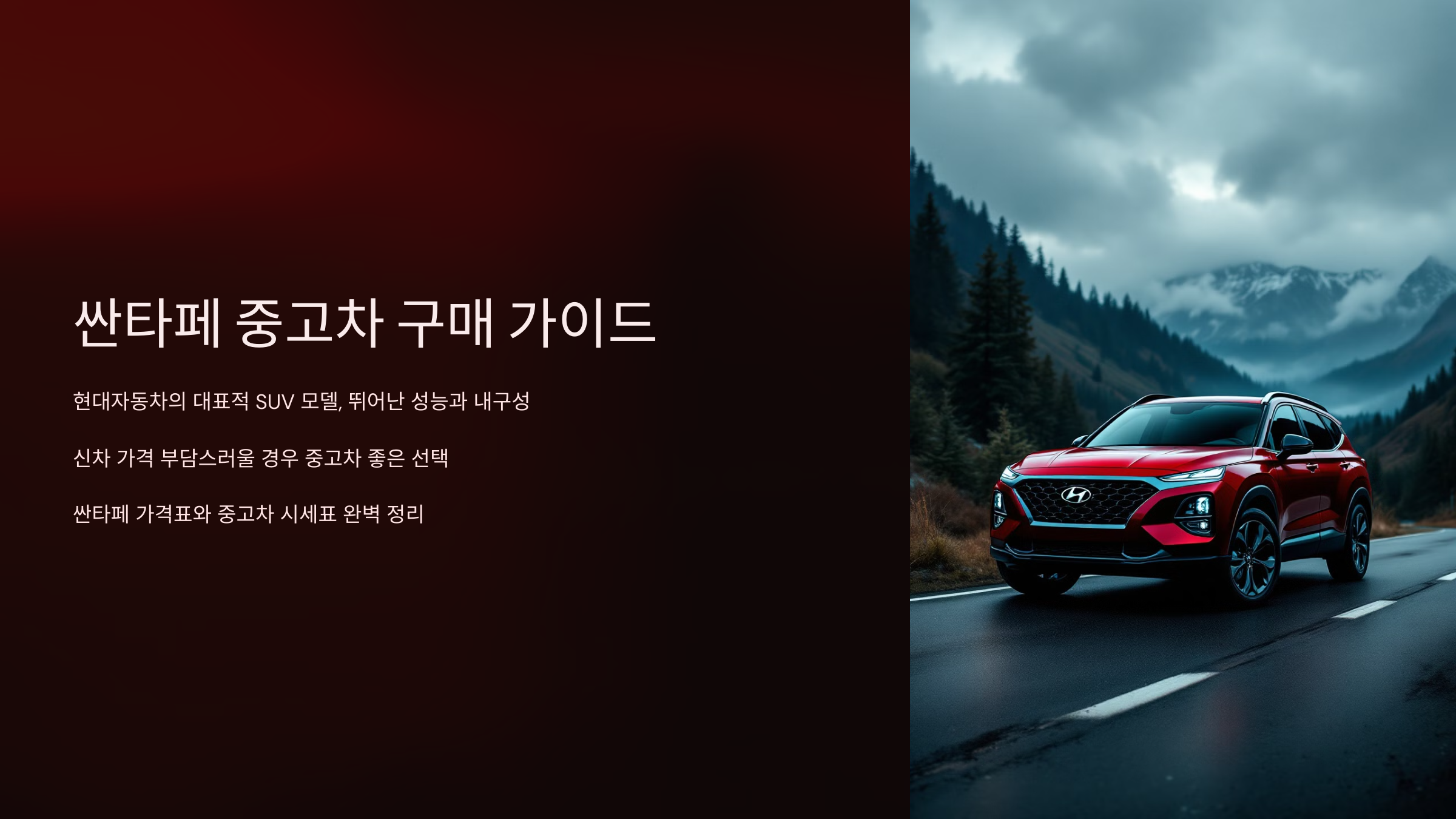 싼타페는 현대자동차의 대표적인 SUV 모델로, 뛰어난 성능과 내구성, 편안한 승차감으로 인기가 높습니다. 신차 가격이 부담스러운 경우, 중고차를 고려하는 것도 좋은 선택이 될 수 있습니다. 이번 글에서는 싼타페 가격표와 중고차 시세표를 완벽하게 정리해드리겠습니다. 😊