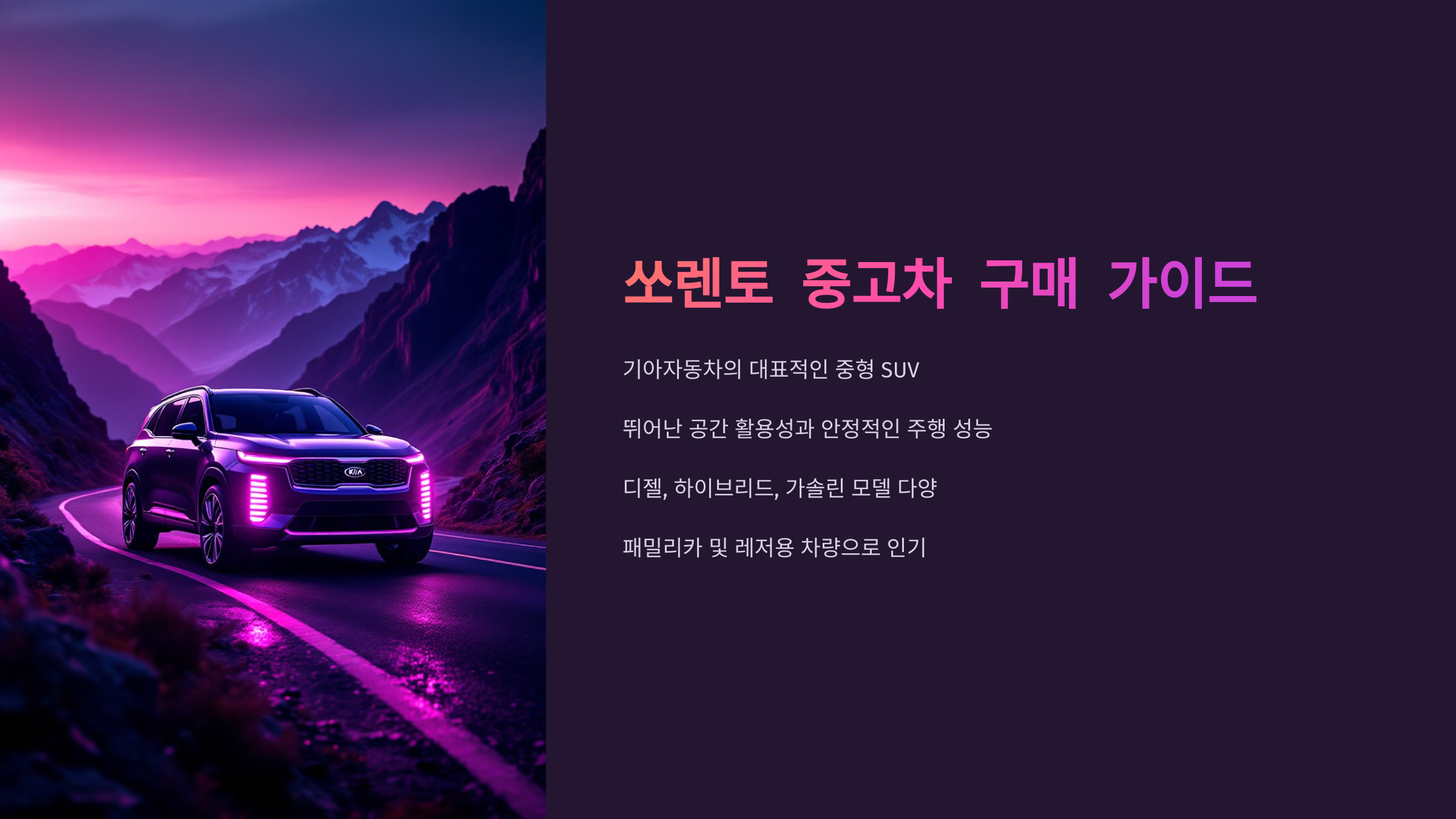 이제 여러분도 쏘렌토 중고차를 스마트하게 구매해 보세요! 🚙💨