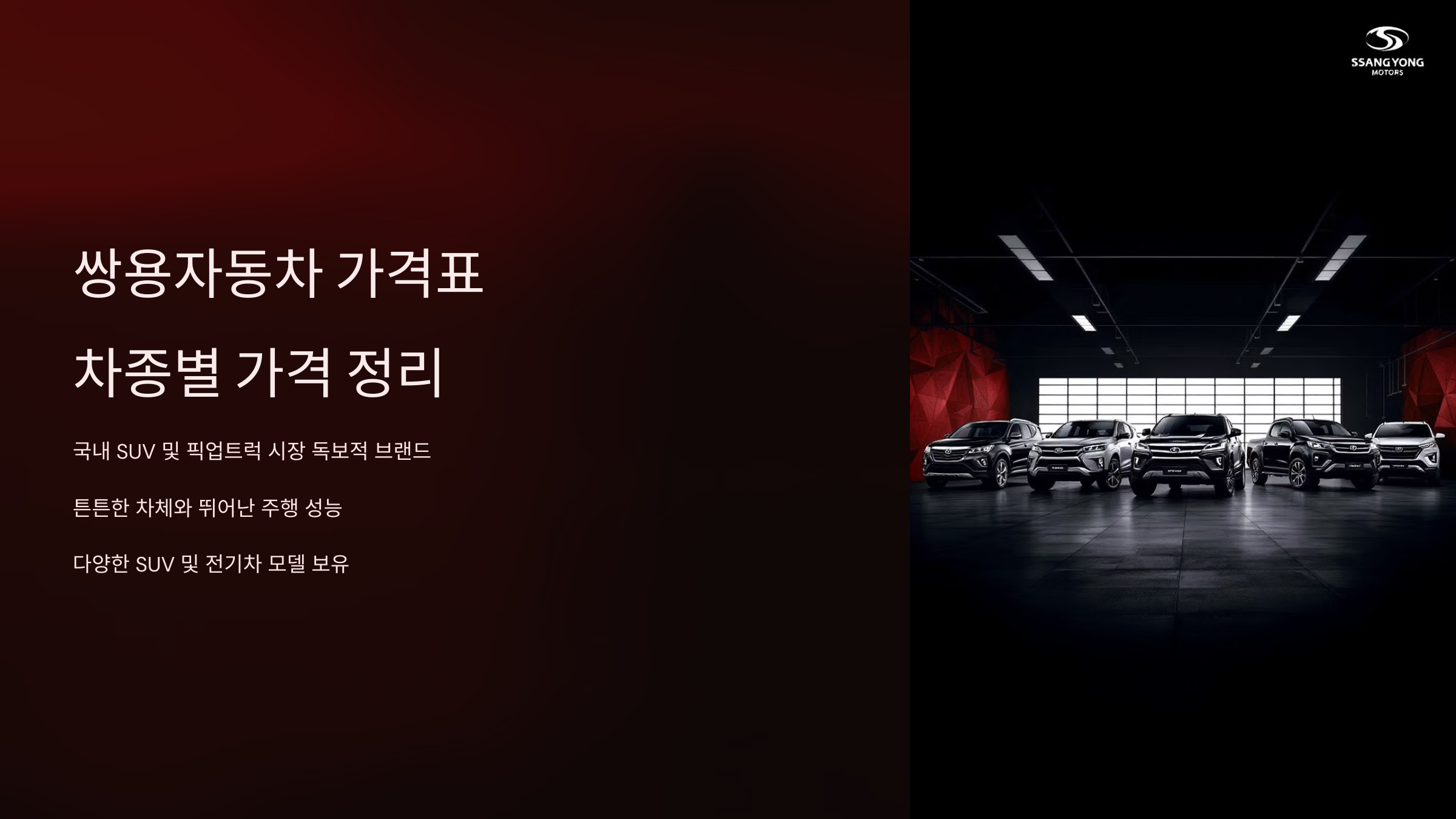 📌 쌍용자동차 신차 가격표 (차종별 정리)