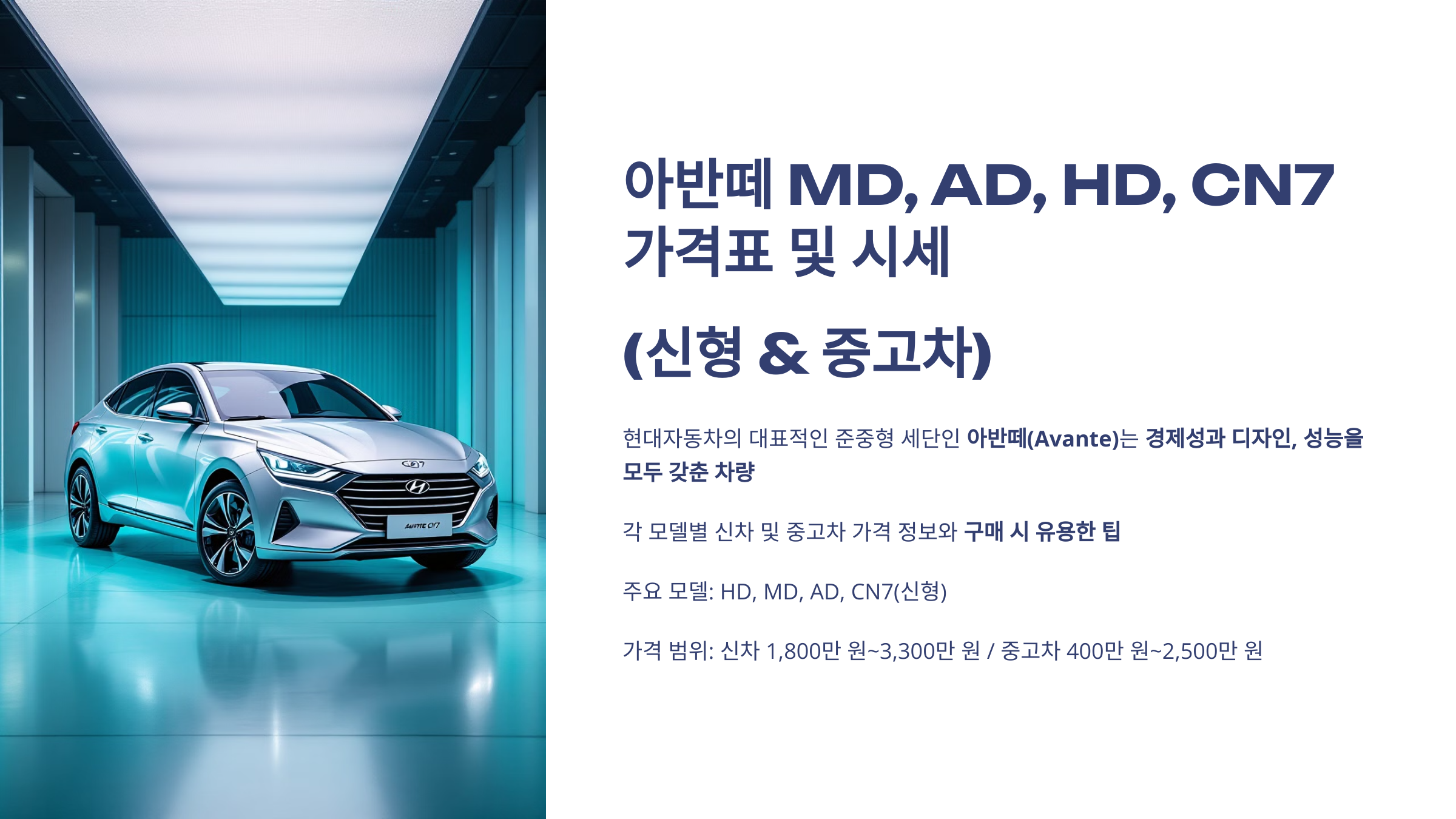 아반떼는 MD, AD, CN7 등 다양한 모델별로 가격 차이가 크며, 신차와 중고차 선택에 따라 예산을 조정할 수 있습니다.