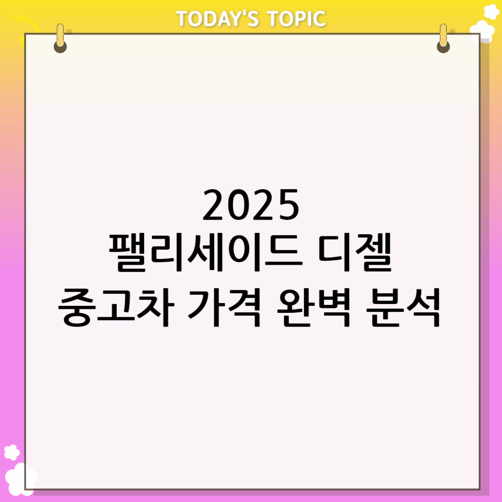 2025년형 팰리세이드 디젤 중고차를 고려하고 계신가요? 이 글은 여러분이 합리적인 가격으로 최고의 팰리세이드를 선택할 수 있도록 돕기 위해 작성되었습니다. 중고차 시장의 최신 시세 정보부터 구매 팁, 유지 관리 요령까지, 2025 팰리세이드 디젤 중고차 가격 시세표에 대한 모든 것을 꼼꼼하게 분석하여 제공합니다.