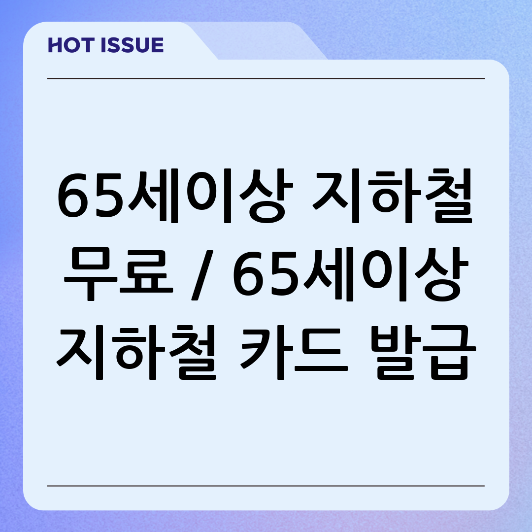 65세 이상 지하철 무료 이용 완벽 가이드: 카드 발급부터 혜택까지!